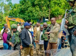 The governors of North Kivu and South Kivu toured rehabilitation works on National Road No. 2 on Saturday, March 7, including a bridge swept...