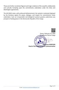 Below are the condemnation statements issued by AFC/M23 and the FARDC.