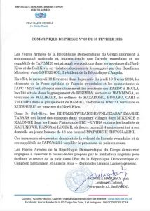 Bisimwa’s comments follow a statement by the movement’s spokesperson, Lawrence Kanyuka, issued Thursday, February 19, reporting “daily, systematic, and unpunished massacres” of civilians in Minembwe, Mikenge, Karingi, and across the Hauts Plateaux.